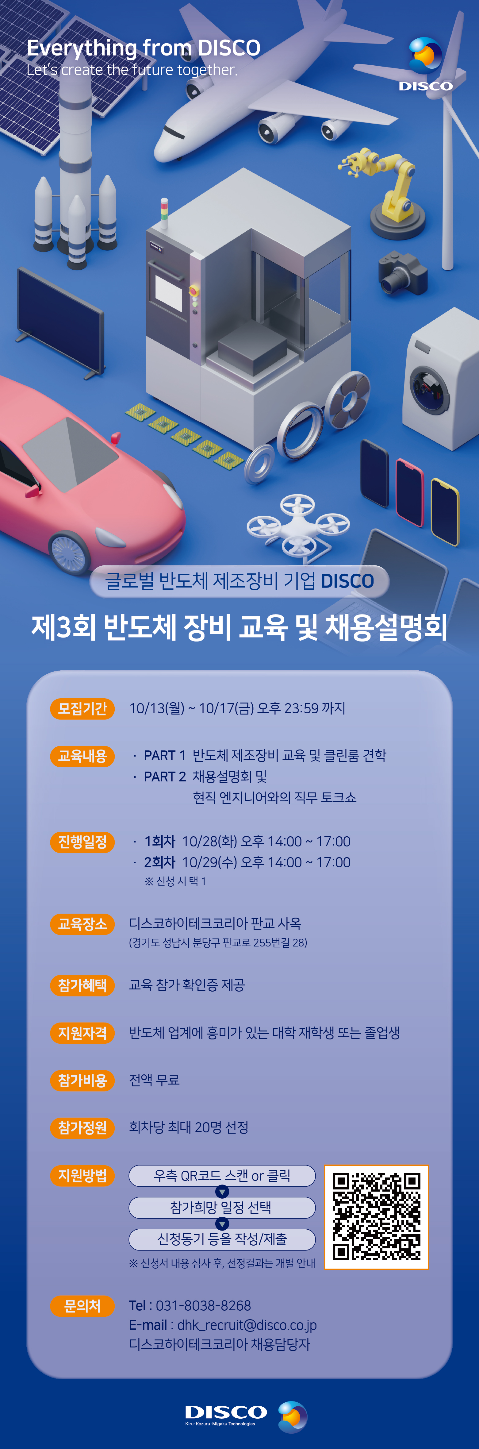 � [디스코하이테크코리아]제3회 반도체 장비 교육 및 채용설명회 모집 안내(~10/17 까지)
