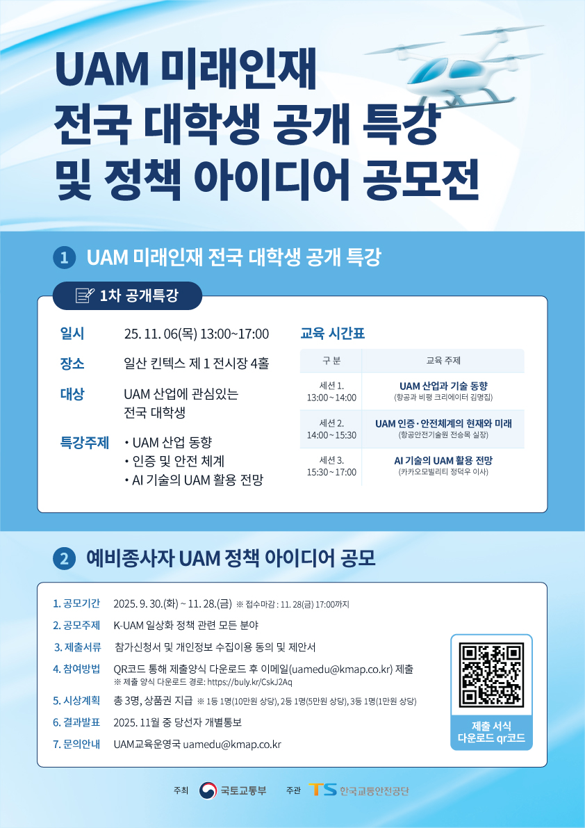 UAM(도심항공교통) 산업의 최신 동향과 기술 발전 방향을 공유하는 본 특강에