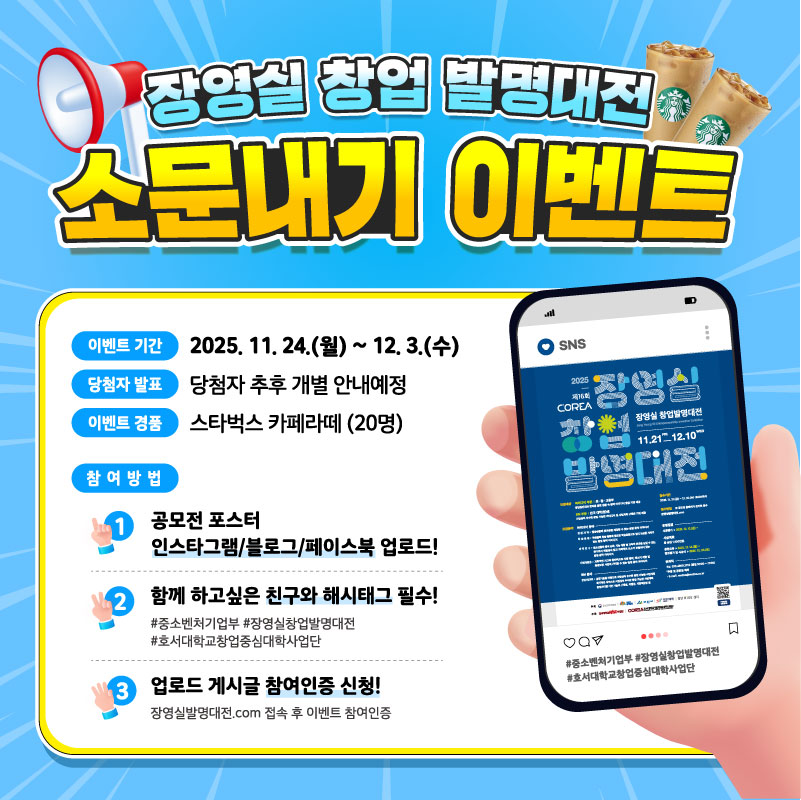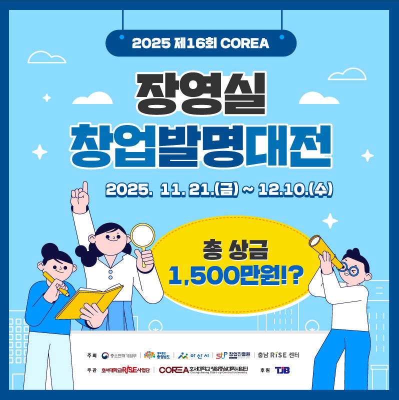 | 제목 | [호서대학교] ★총상금 1,500만원★ 제16회 COREA 장영실 창업 발명대전 | 마감일시 | 2025-12-01 | 조회수 | 138 |