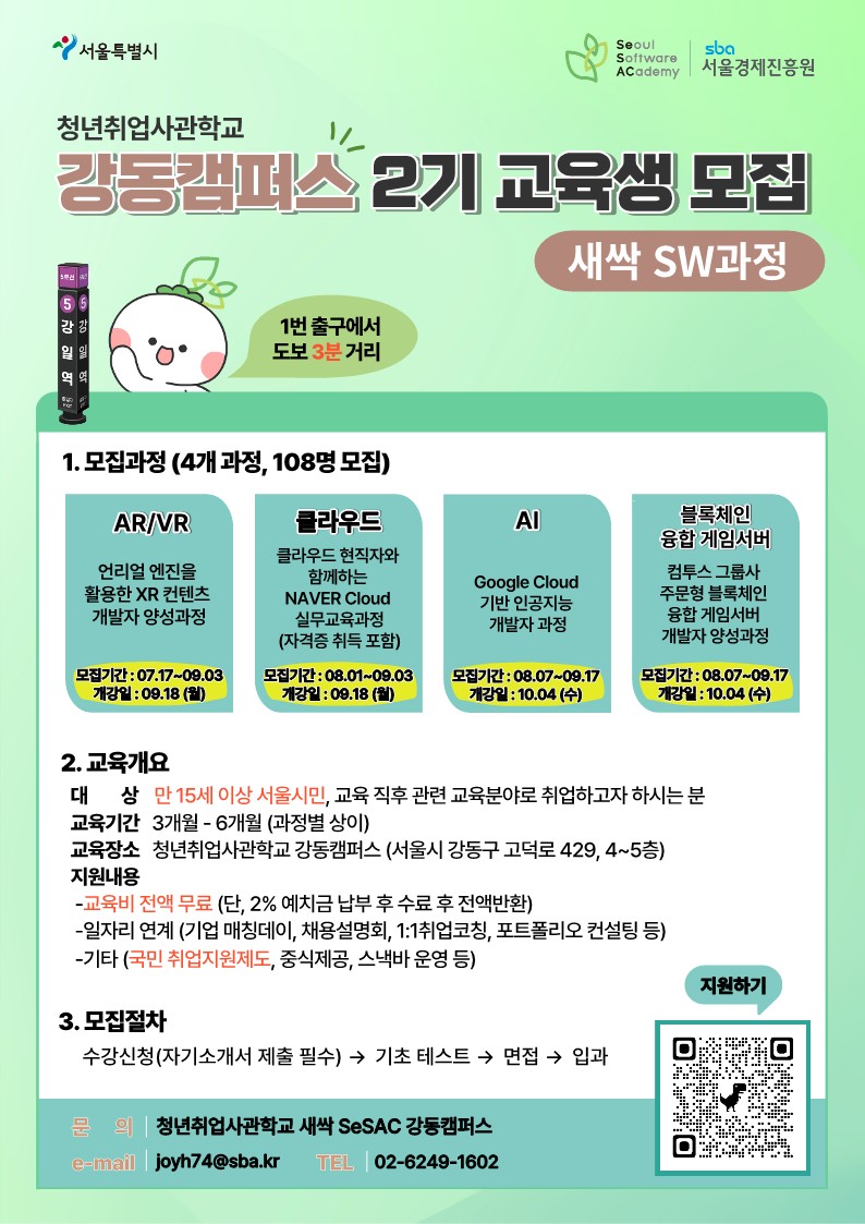 수요 증가에 대응하고자 [서울시 청년취업사관학교 새싹]을 적극 추진하고 있습니다.