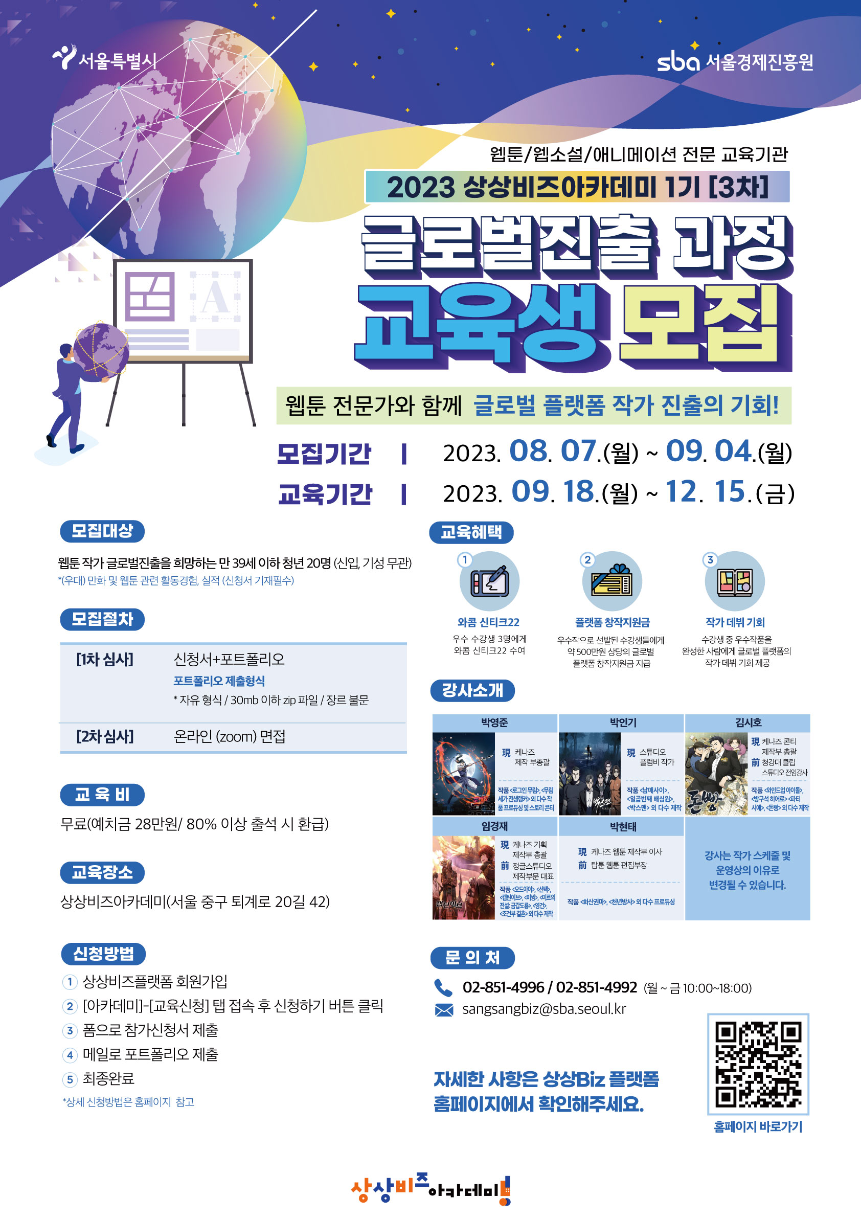 서울시 출연기관입니다. 웹툰, 웹소설, 애니메이션 분야의 교육 및 일자리 연계 프로그램인