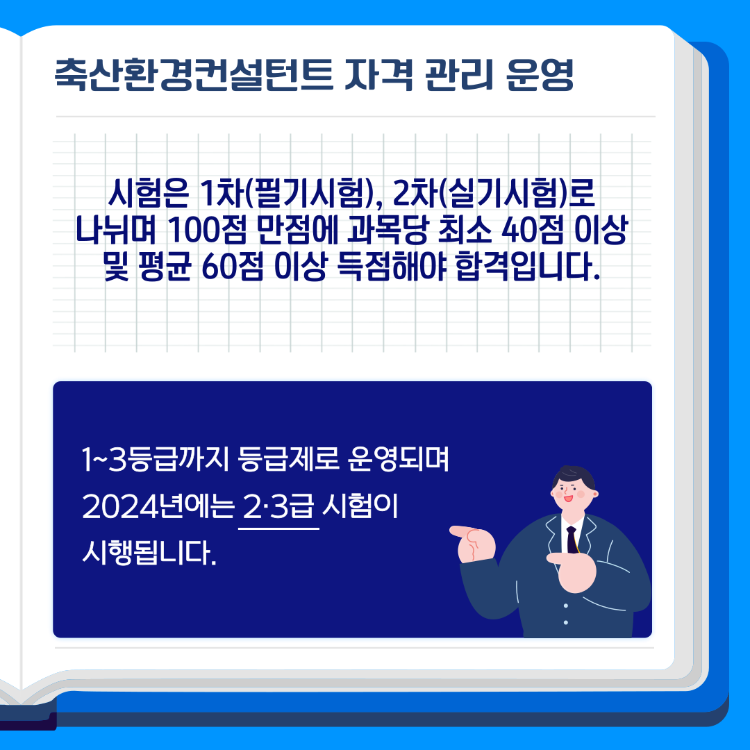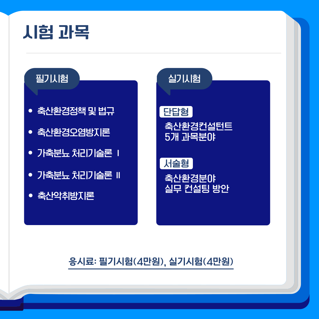 ❍ 축산악취 저감, 가축분뇨의 적정관리·이용 등 농가의 축산환경 개선을 지도하는 우수 전문인력 검증 및 양성을 위한 자격시험