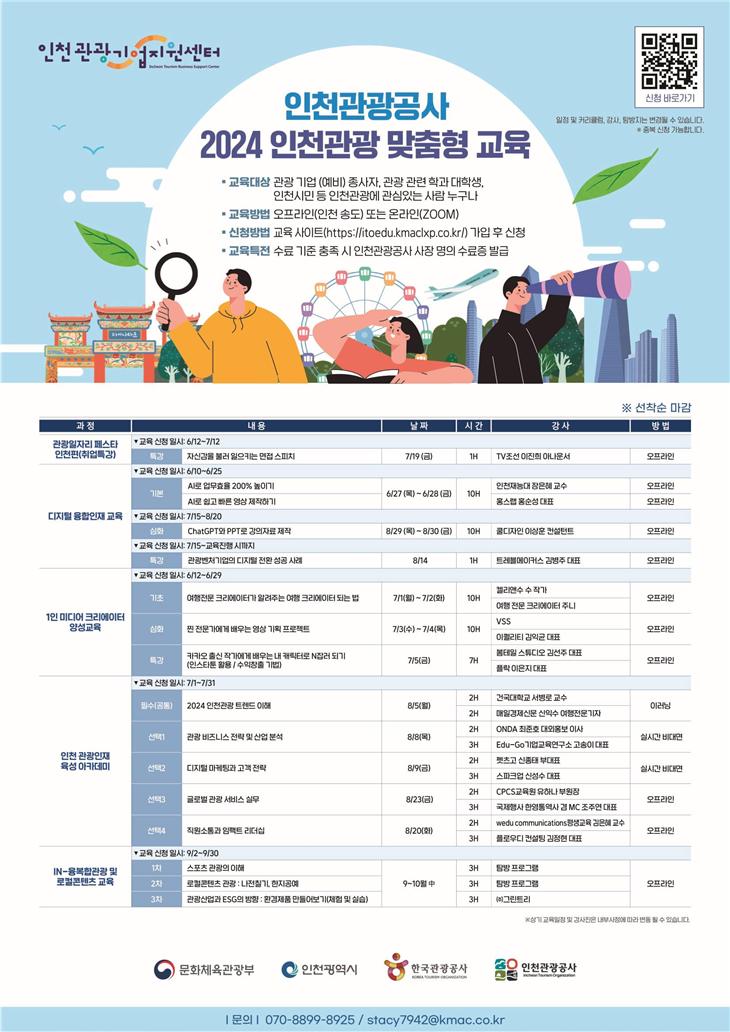 「2024 인천관광 맞춤형 교육」8월 교육생 모집 공고