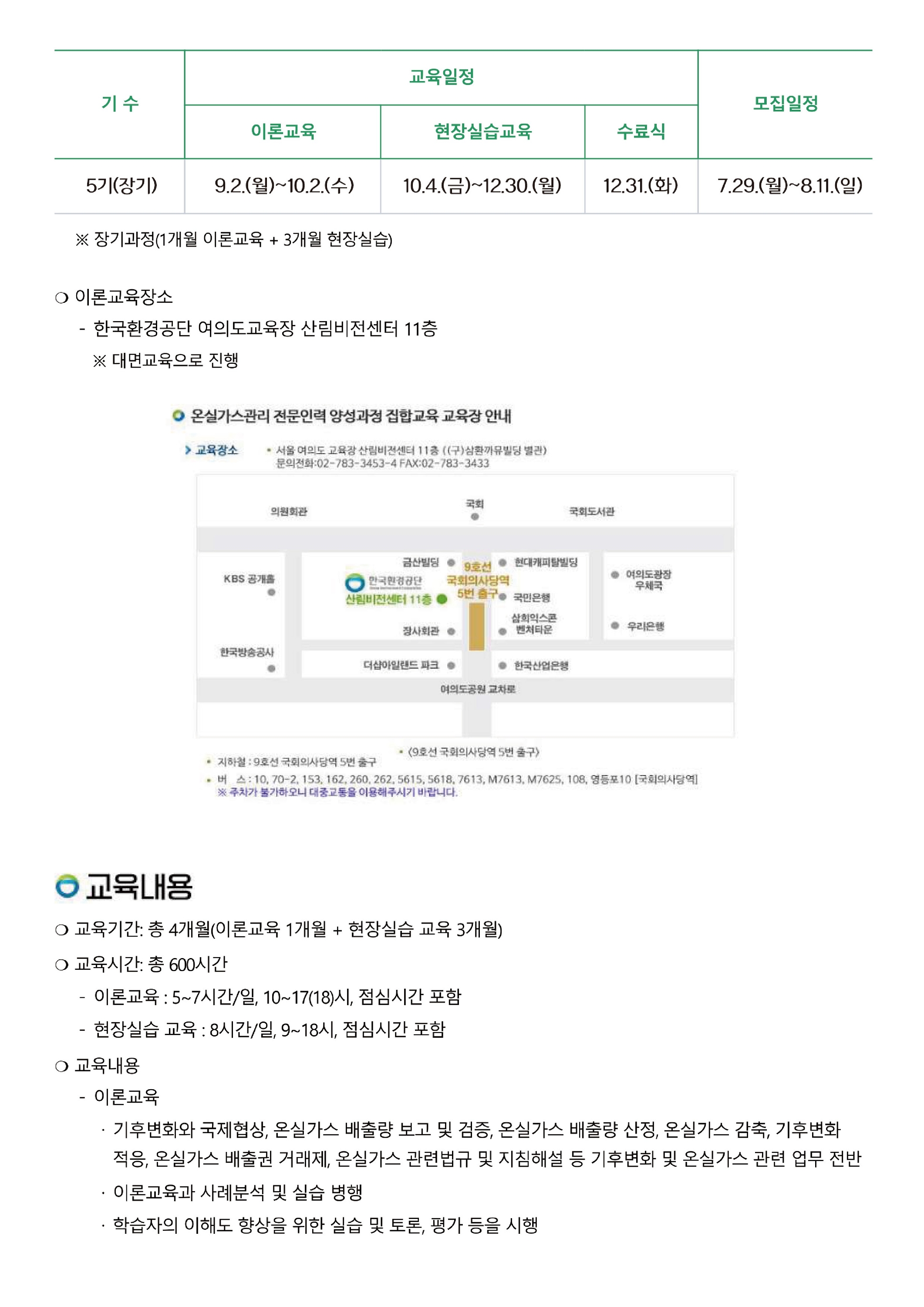 2024년 제5기 온실가스관리 전문인력 양성과정 교육생 모집 안내