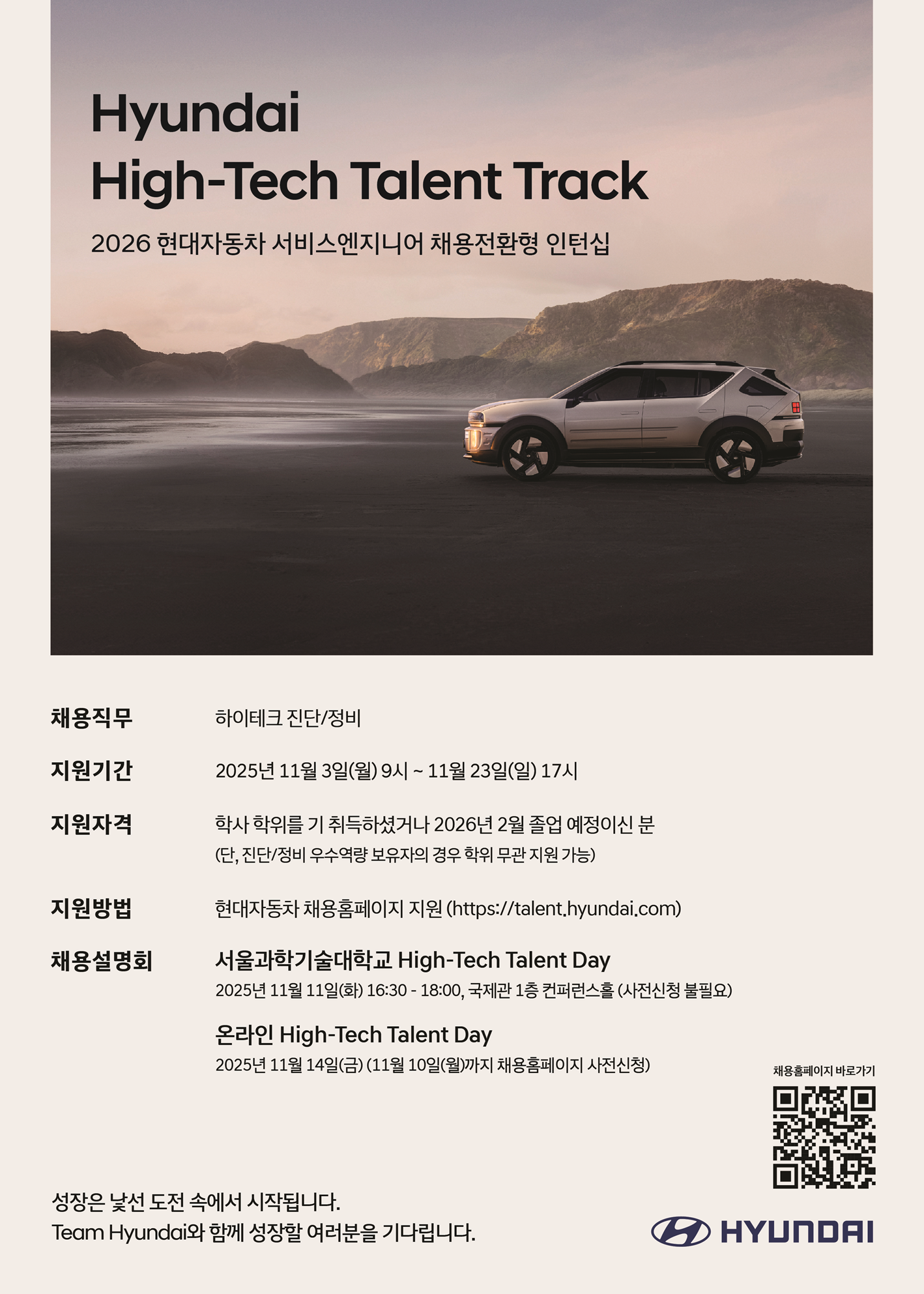ㅣ2026 현대자동차 서비스엔지니어 캠퍼스리크루팅ㅣHyundai High-Tech Talent Day (사전신청 불필요)