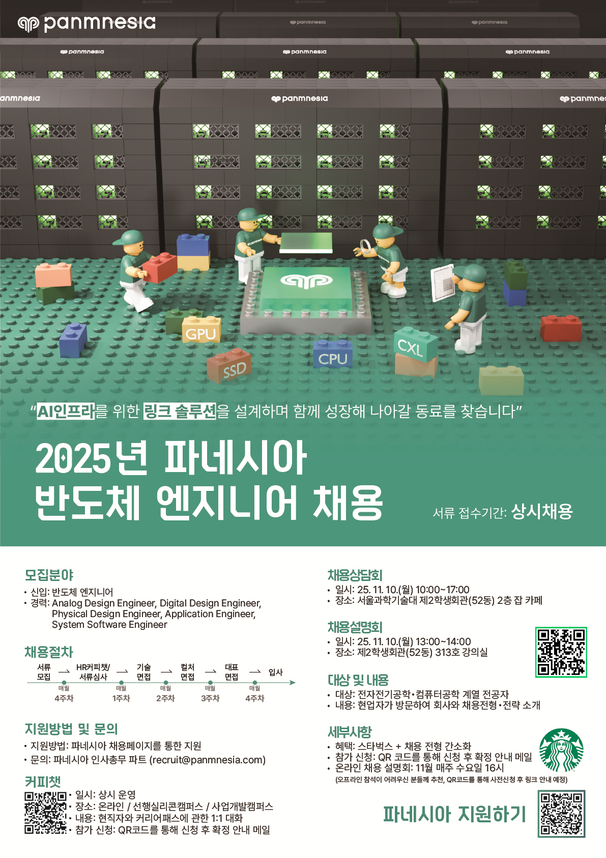 � 채용 설명회: 25.11.10.(월) 13:00 ~ 14:00 / 제2학생회관(52동) 3층 313호 강의실