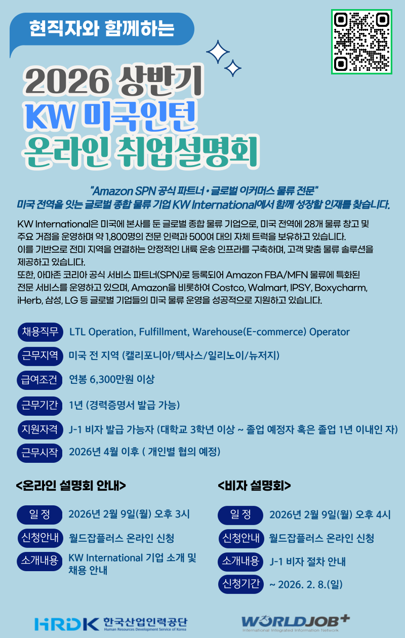 채용설명회 제목: 2026 상반기 미국 물류대기업 KW 인턴채용 온라인 설명회 개최(~02.08)