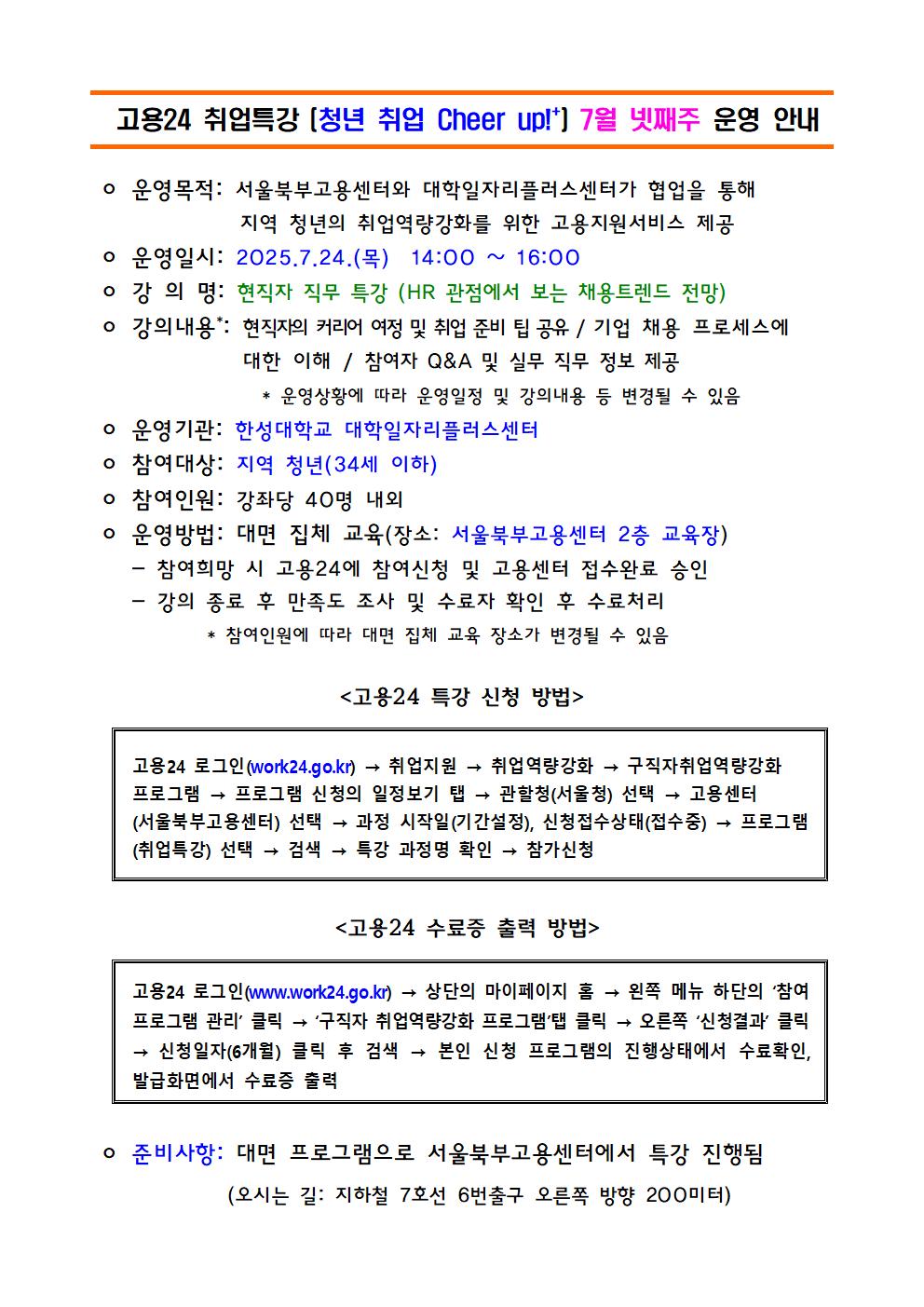 [고용노동부] 7월 넷째주 고용24 취업 특강 [청년 취업 Cheer up!+)
