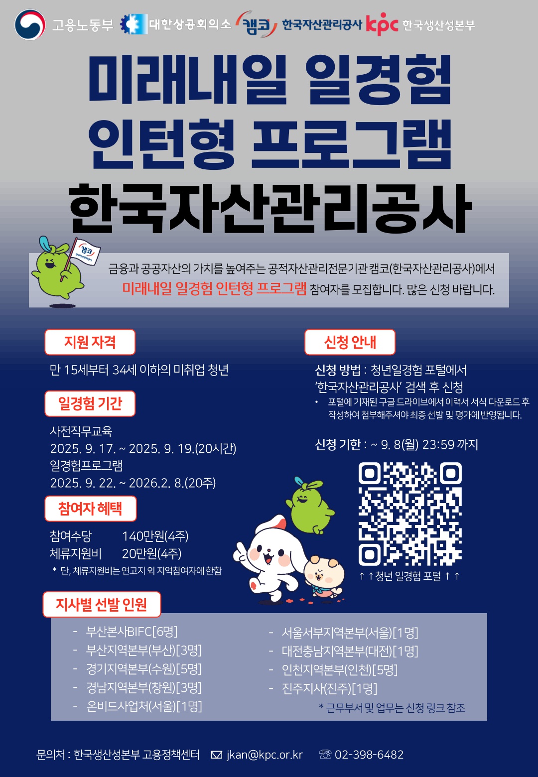 | 제목 | [고용노동부] 청년 일경험 한국자산관리공사 인턴 프로그램 | 마감일시 | 2025-09-08 | 조회수 | 135 |