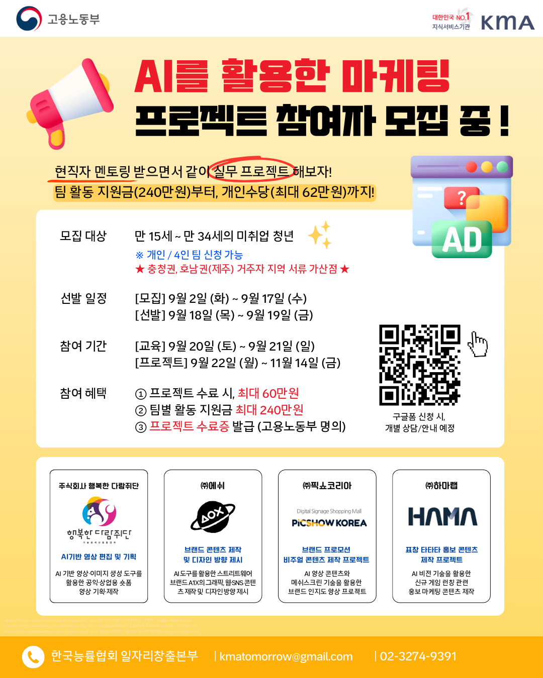 [고용노동부] 한국능률협회 청년일경험 프로젝트 - AI를 활용한 마케팅 프로젝트 참여자 모집
