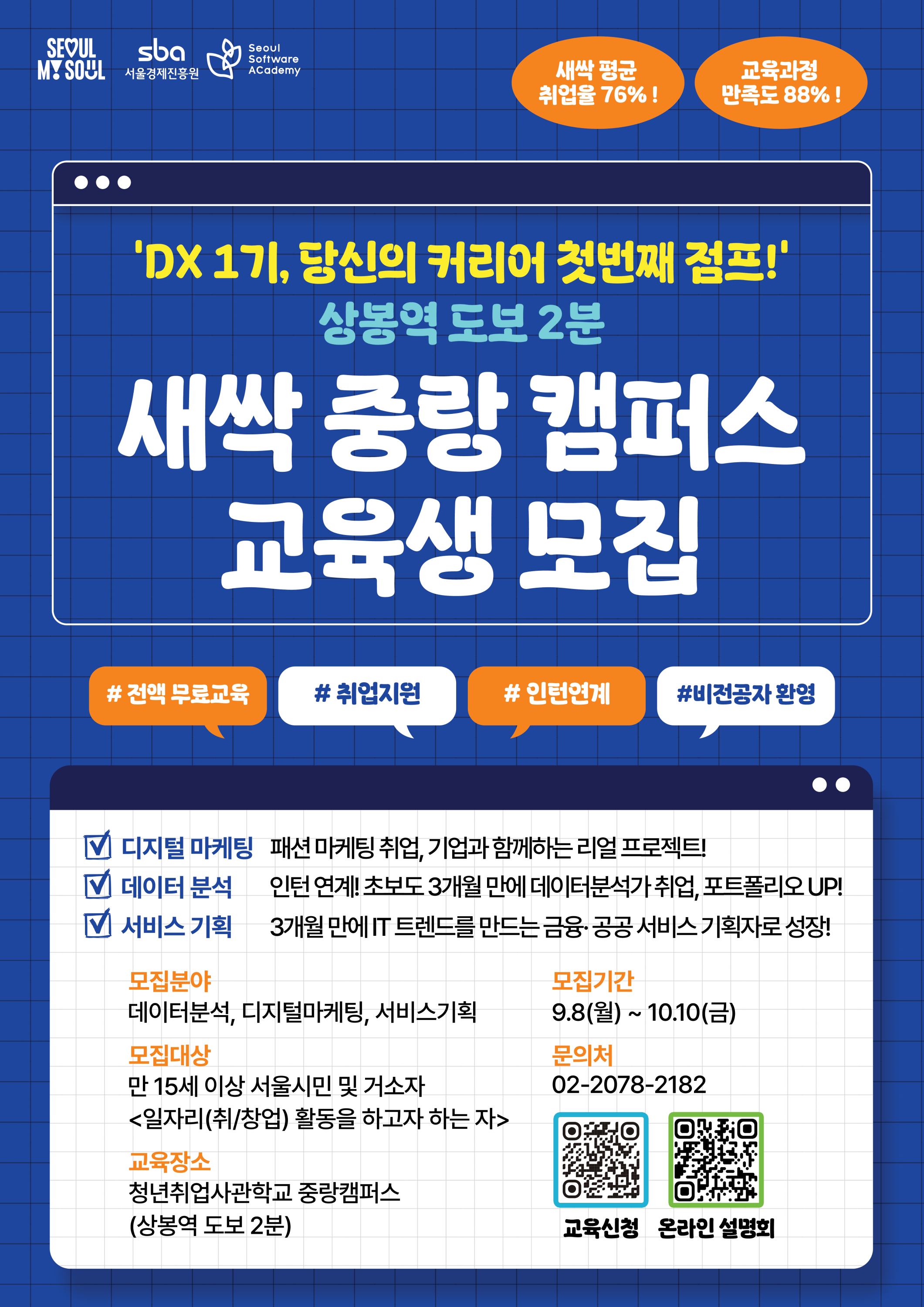 [서울시] 청년취업사관학교 새싹(SeSAC) 중랑캠퍼스 DX 1기 교육 참여자 모집