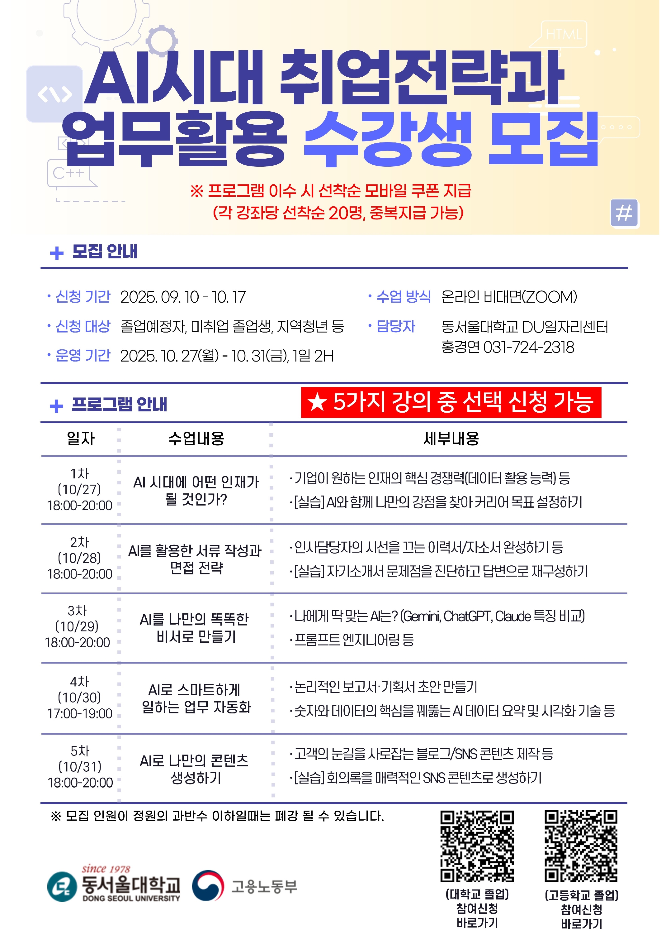 [고용노동부] 동서울대학교 - AI시대 취업전략과 업무 활용 특강