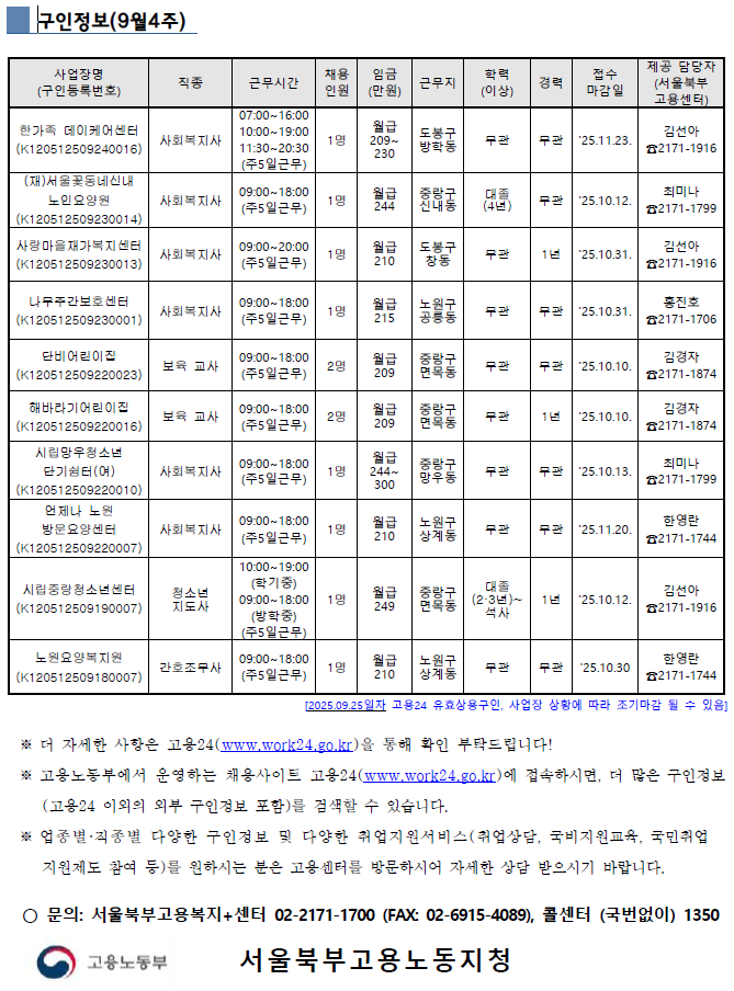 [고용노동부] 취업지원서비스 자료(9월 4주)