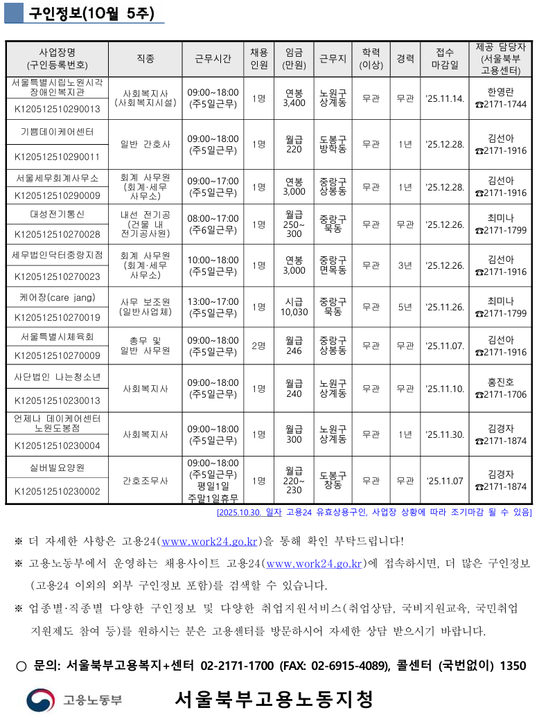 [고용노동부] 취업지원서비스 자료(10월 5주)