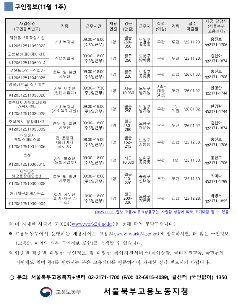 [고용노동부] 취업지원서비스 자료(11월 1주)