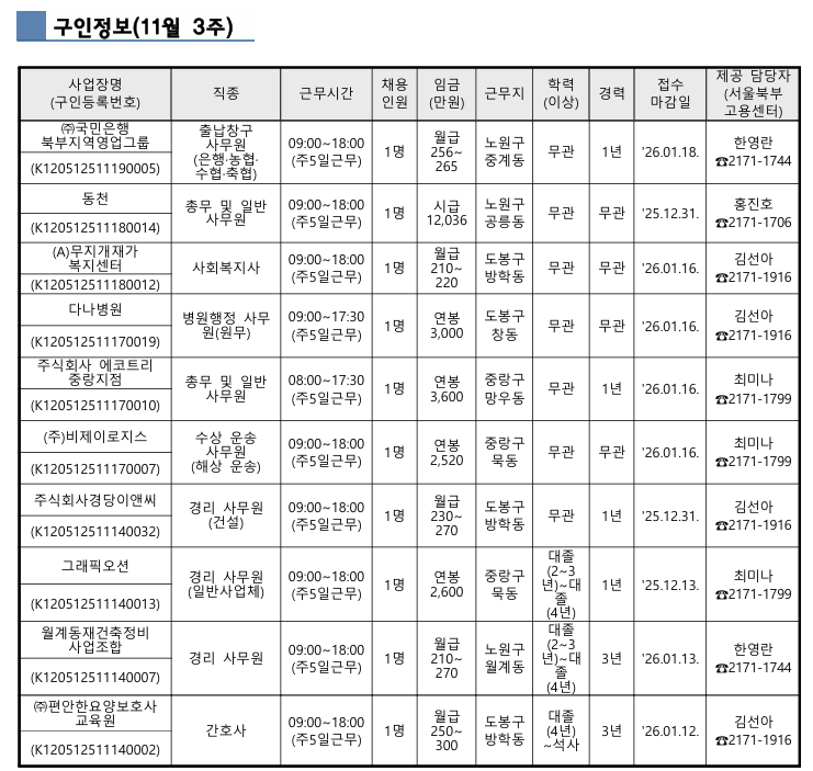[2025.11.20. 일자 고용24 유효상용구인, 사업장 상황에 따라 조기마감 될 수 있음]