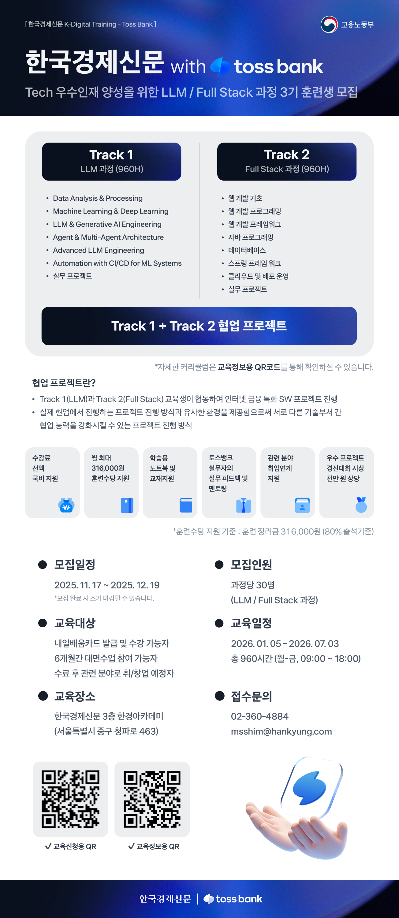 [KDT] 한국경제신문 with toss bank Tech 우수인재 양성 MLOps / Full stack 과정 교육생 모집