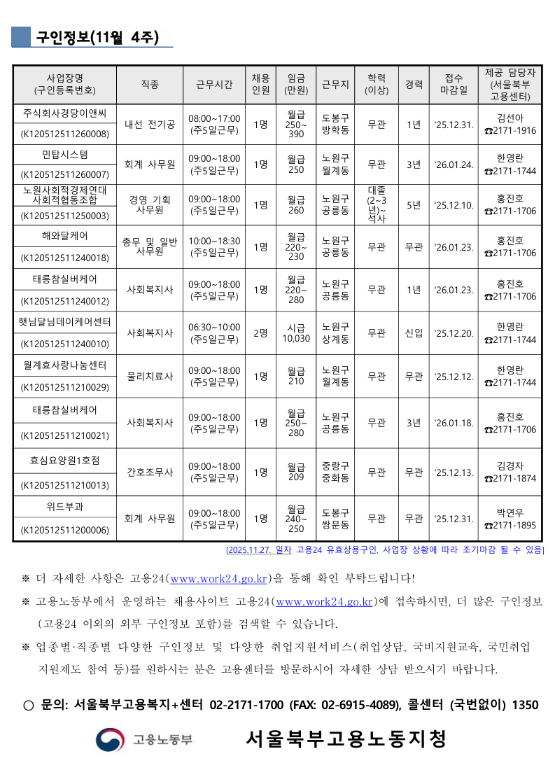 [고용노동부] 취업지원서비스 자료(11월 4주)