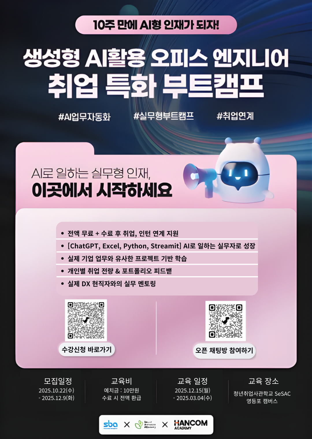 비용: 0원 (예치금 10만원 → 수료 시 전액 환급)