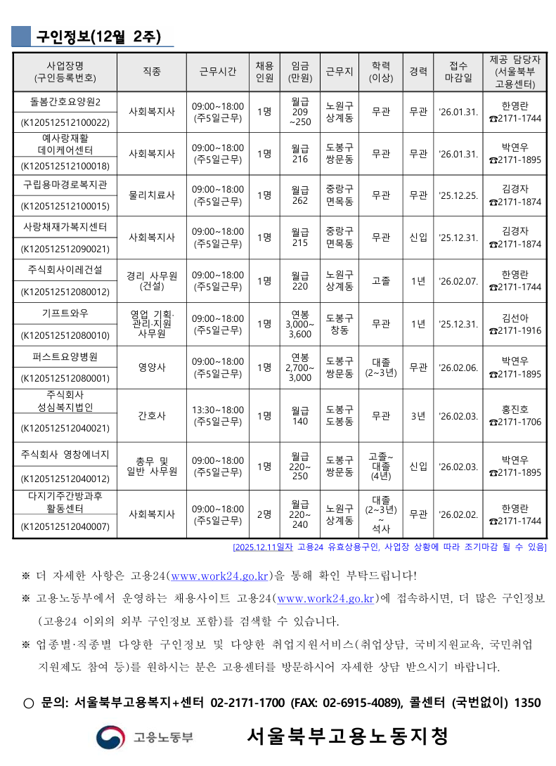 [고용노동부] 취업지원서비스 자료(12월 2주)