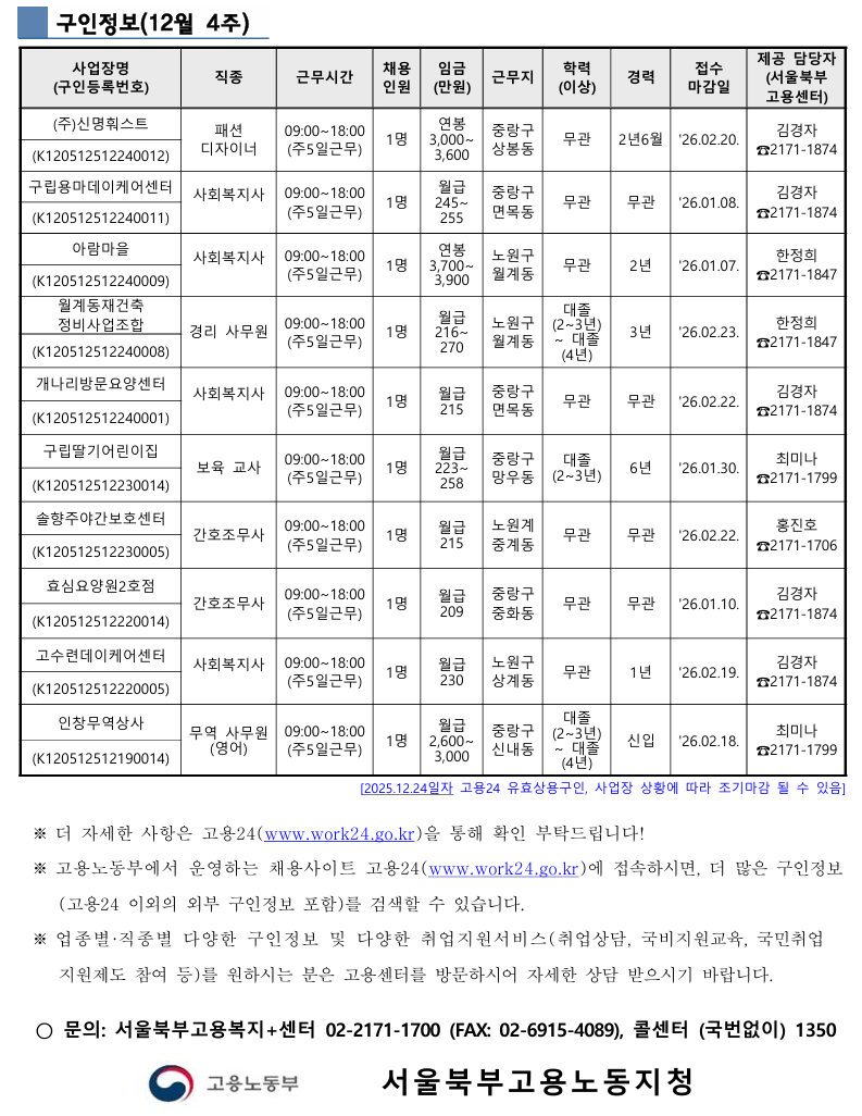 [고용노동부] 취업지원서비스 자료(12월 4주)