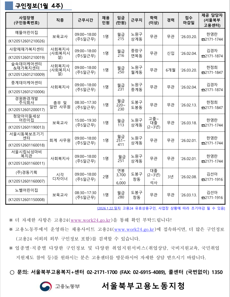 [고용노동부] 취업지원서비스 자료(1월 4주)
