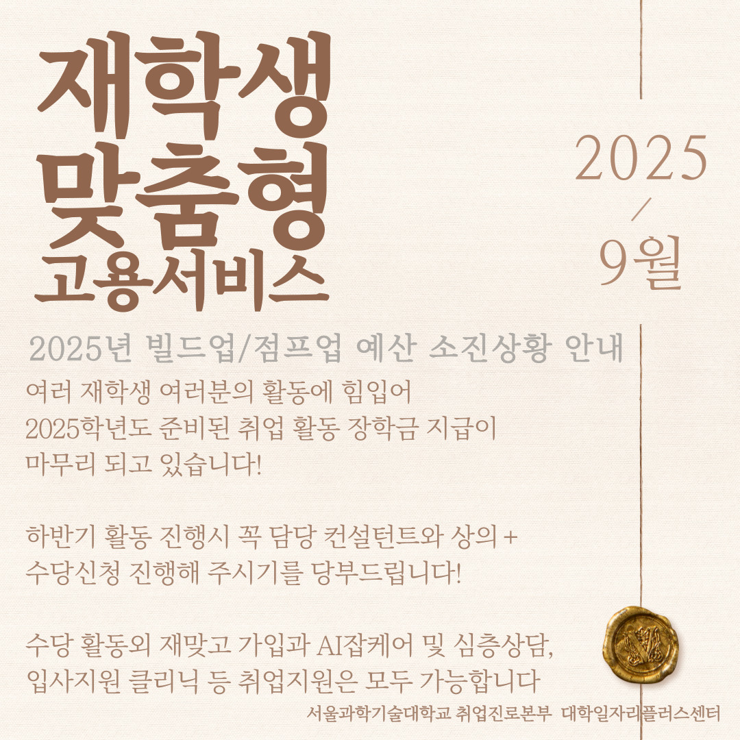 ★[ 2025학년도] 재학생 맞춤형 고용서비스 빌드업/점프업 장학금 예산 소진 상황 안내