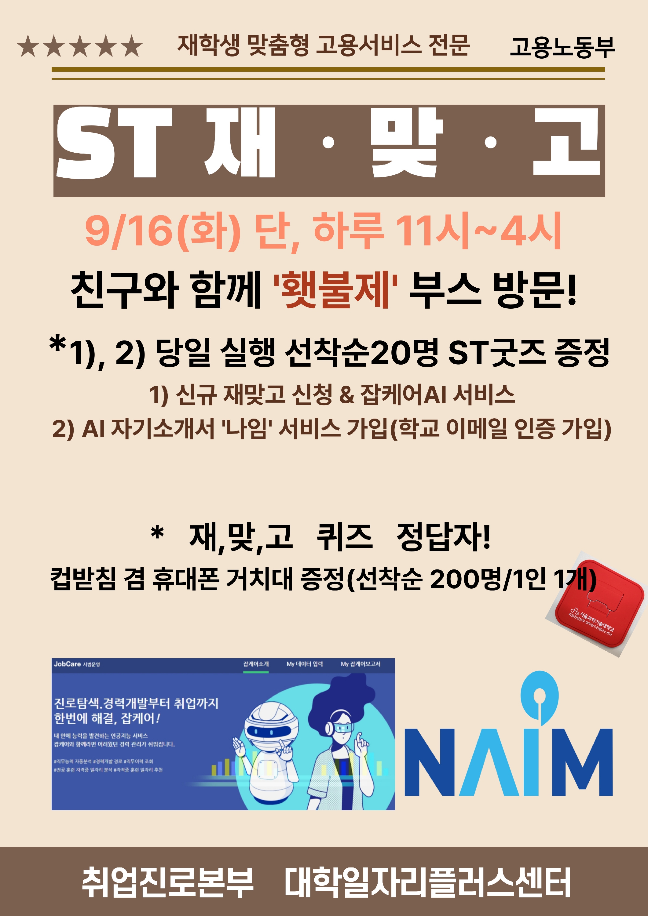 ★ 9월 16일(화) 향학로에서 만나요~! (재.맞.고 신청자 및 퀴즈 이벤트 진행)