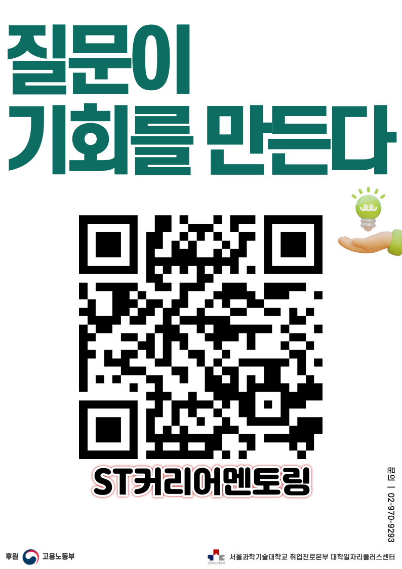 - 신청방법: 취업진로본부 홈페이지(https://job.seoultech.ac.kr/mentoring/guide/) > ST커리어멘토링 > 멘토링신청 ⭐