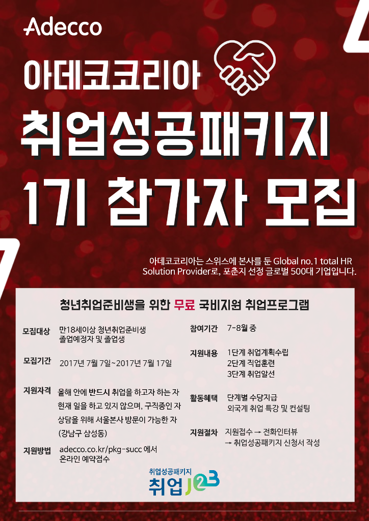 자세한 사항 및 참가신청은 아래 홈페이지를 확인하시기 바랍니다. http://www.adecco.co.kr/pkg-succ