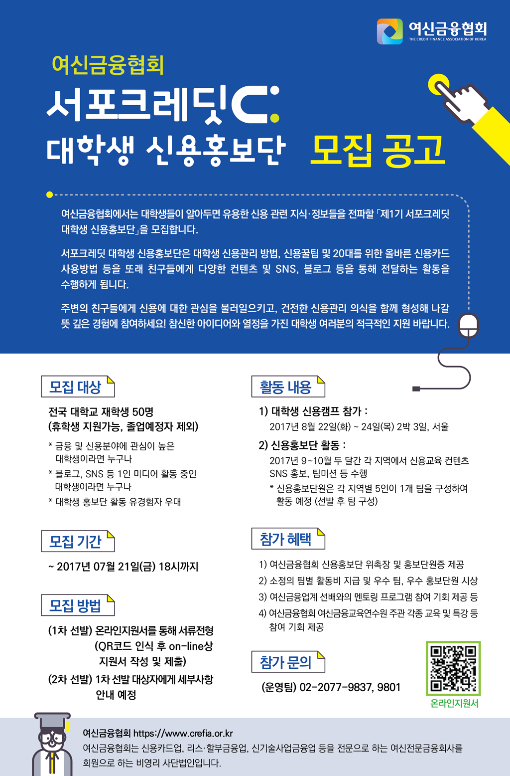 여신금융협회 '제1기 서포크레딧 대학생 신용홍보단' 모집 안내