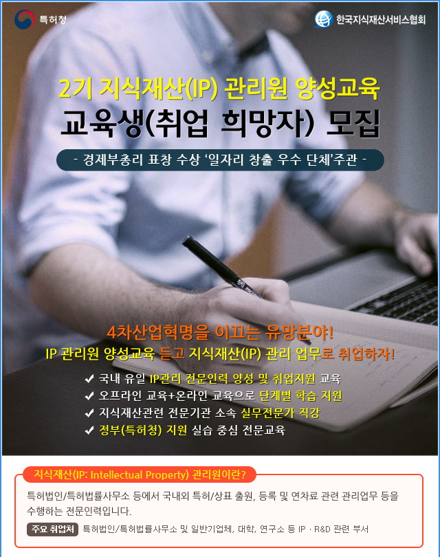 (특허청지원/환급과정) IP관리원 양성교육(채용연계) 제2기 교육생 모집