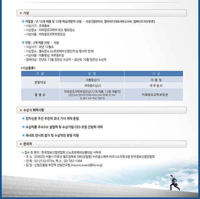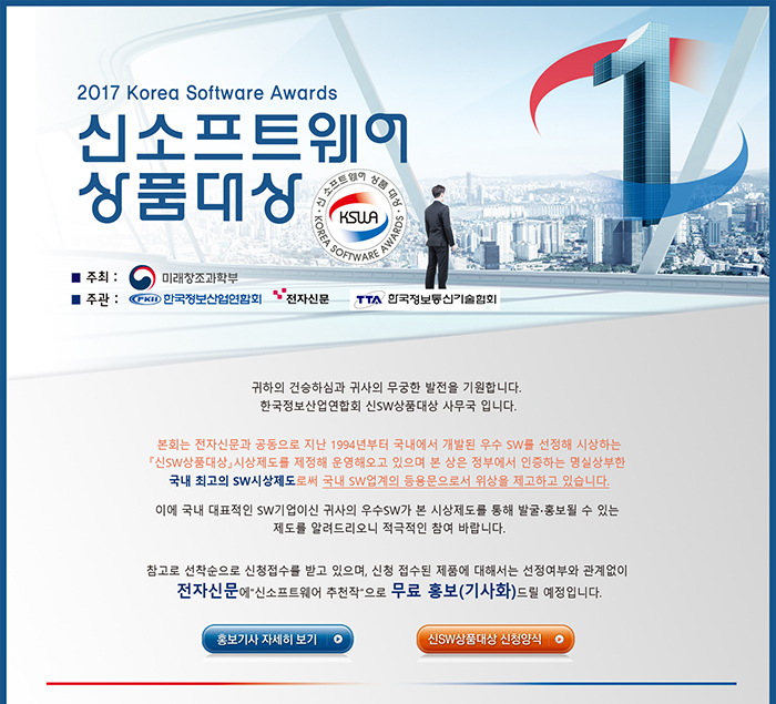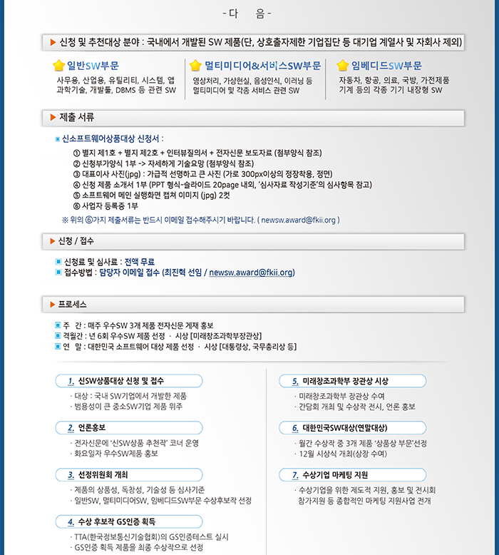 [미래부장관상] 국내 최고의 SW 시상제도, 신SW상품대상 8월 접수 안내(8. 11 금까지)