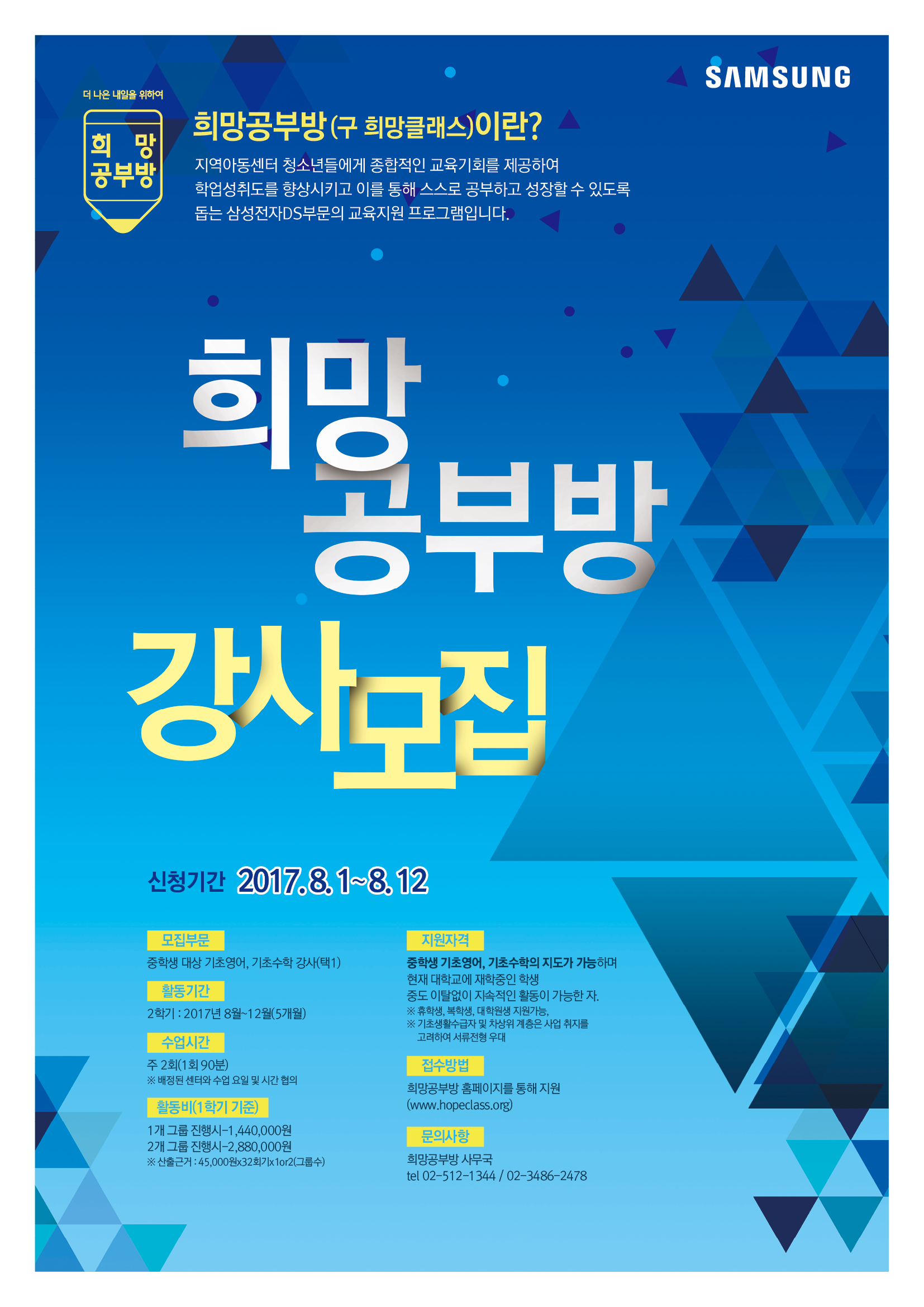 안녕하세요. 삼성전자 희망공부방 운영사무국입니다.